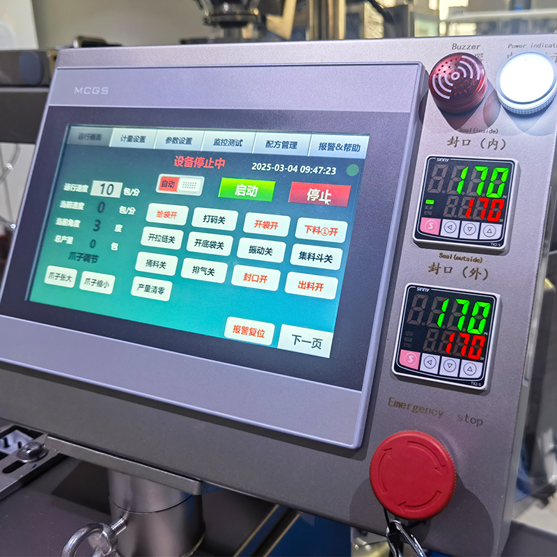2、智能:采用PLC觸摸屏設置包裝過程,可在顯示屏幕當中設置包裝速度、容量、封口等參數,便能夠全自動化執行生產。