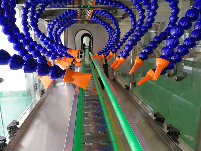 殺菌吹瓶:空瓶進入全自動空罐殺菌吹掃機,進行清潔和殺菌處理。