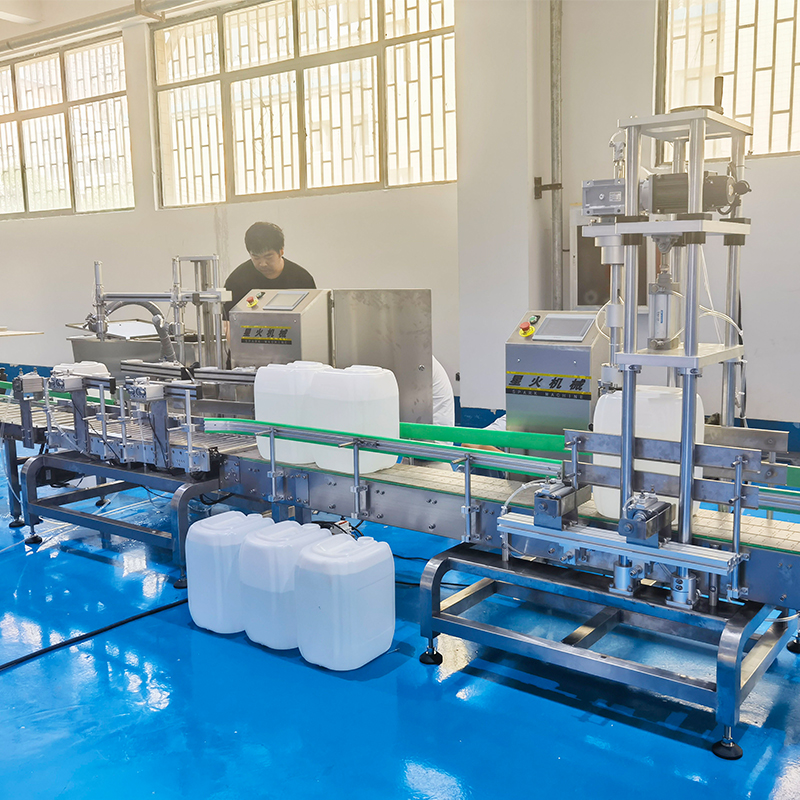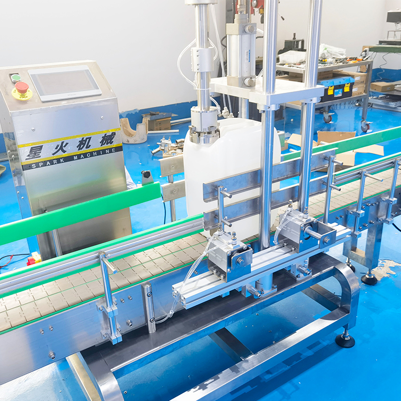 在現(xiàn)代化灌裝領(lǐng)域當(dāng)中,大桶物料的灌裝工作非常的困難,星火智能設(shè)備為了解決大桶物料的灌裝工作,特別打造了這款大型稱重灌裝旋蓋機(jī),全自動(dòng)灌裝旋蓋一體機(jī)可適用于食品、飲料、醫(yī)藥、建筑、農(nóng)業(yè)、化工等行業(yè),全自動(dòng)灌裝旋蓋一體機(jī)對(duì)比傳統(tǒng)大桶物料的灌裝工作,更加的智能、簡便、穩(wěn)定。大型稱重灌裝旋蓋機(jī)快速成為了眾多行業(yè)當(dāng)中的首選機(jī)械。