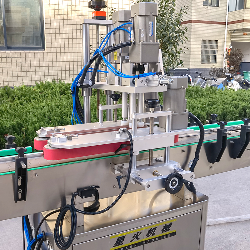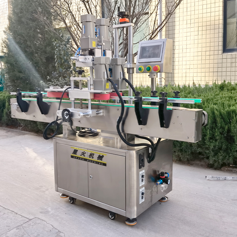 灌裝工作的收尾總是以理蓋、上蓋、旋蓋作為成品結束工序的一項。全自動夾蓋旋蓋機是星火智能設備新開發的一款多功能機械設備,多功能理蓋旋蓋機通過精心的設計結構,為玻璃瓶、塑料瓶、方形瓶、異形瓶等容器提供了良好的旋蓋效果。全自動夾蓋旋蓋機實現了從理蓋、上蓋、旋蓋全流程的自動化操作,操作過程無需人工干預,提高生產率。